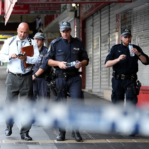 Police at the scene of the fatal shooting of gangster bilal hamze in bridge street in the sydney cbd.